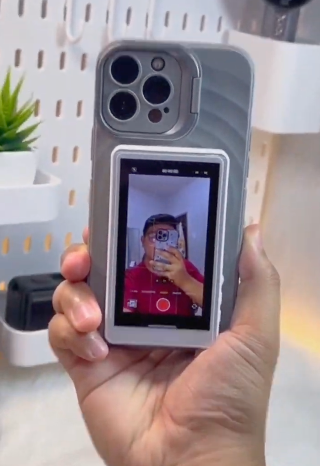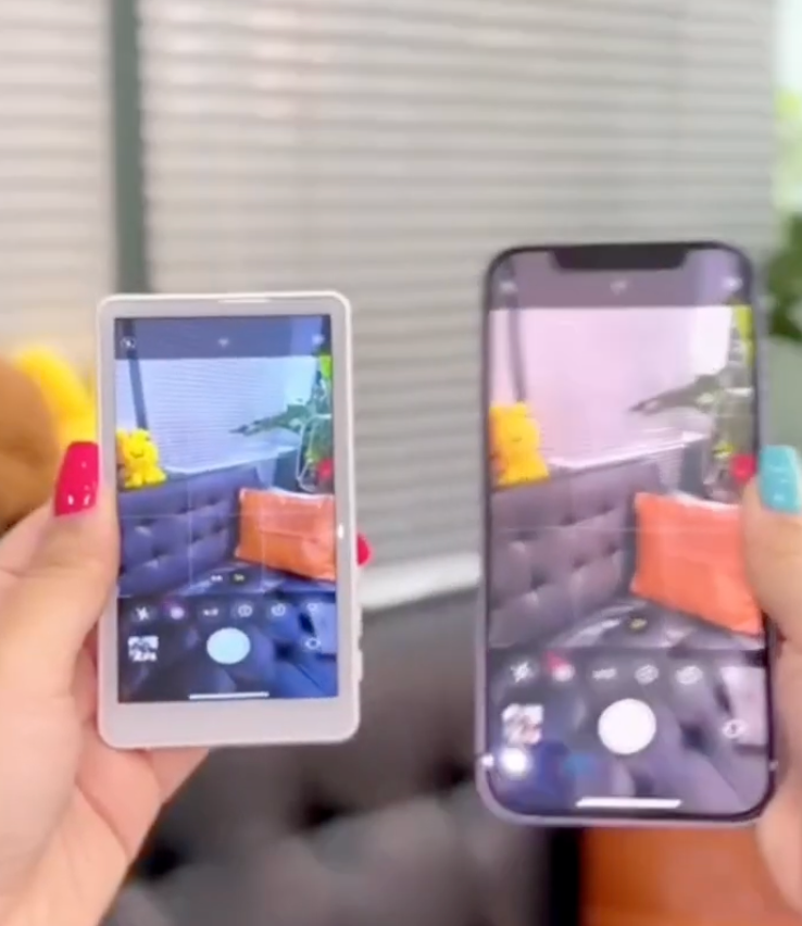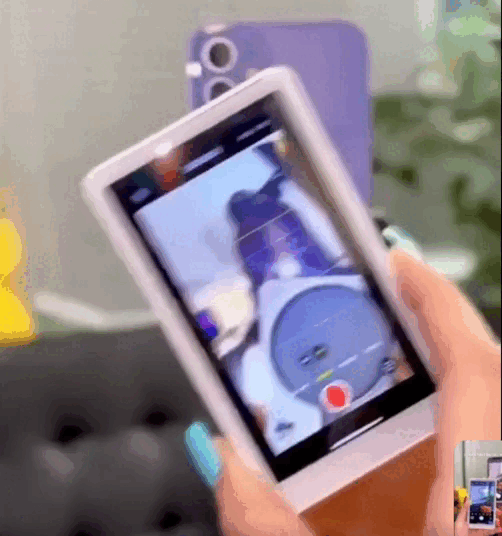 Aquí es donde entra esta pantalla magnética trasera para celular.Un accesorio inteligente que se pega fácilmente detrás de tu teléfono y duplica exactamente lo que muestra tu pantalla, permitiéndote verte mientras grabas con la cámara trasera